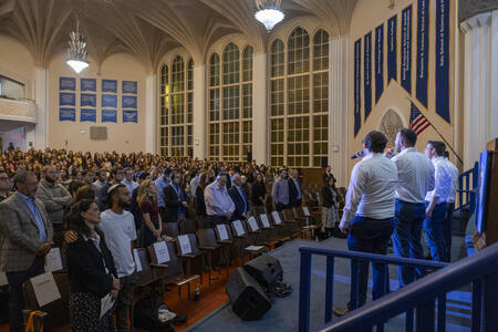 Indeed, YU students stand out for their high GPAs and test scores, distinguished by honors, research, and leadership across extracurricular life. But what defines them most is how they show up: filling auditoriums for thoughtful conversations, singing shoulder to shoulder at concerts, and creating a campus atmosphere where community and learning thrive together.